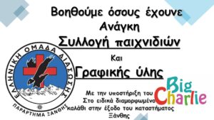 Το παραρτημά μας σε συνεργασία με το κατάστημα BIG CHARLIE συλλέγει παιχνίδια και γραφική ύλη για να τα παραδώσει σε οικογένειες που δυσκολεύονται οικονομικά.
