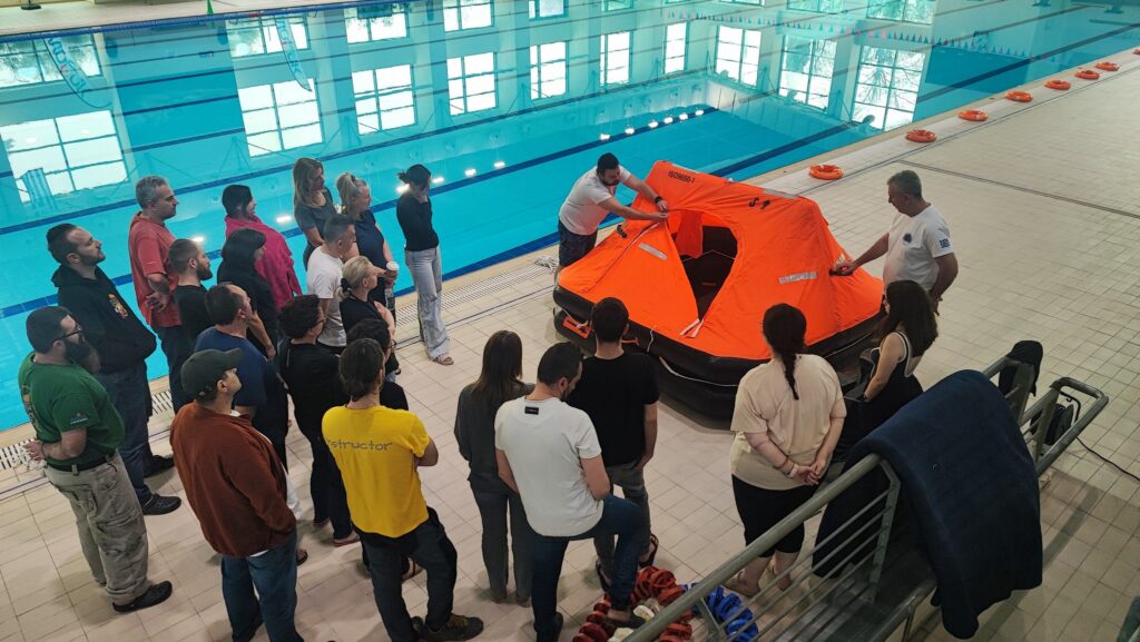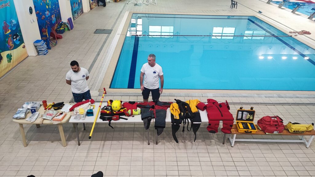 Τα μέλη είχαν την ευκαιρία να γνωρίσουν από κοντά τον εξοπλισμό διάσωσης ορμητικών νερών, τον εξοπλισμό σκάφους διάσωσης, καθώς και τον εξοπλισμό που περιλαμβάνεται σε μία σωστική σχεδία (life raft). Η εκπαίδευση περιλάμβανε: